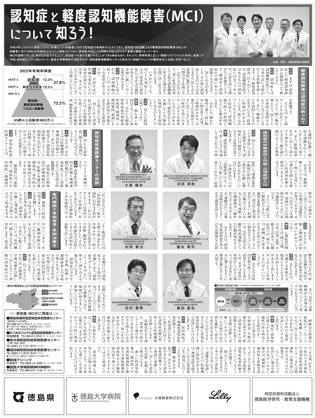 徳島新聞社が、県内の医師6名による「認知症と軽度認知機能障害」をテーマとした座談会を企画。当日はMCとして座談会を進行し、その内容を15段紙面としてまとめました。